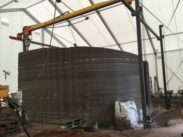 L’imprimante va pouvoir construire des murs vides de matières, et des architectes vont remplir ces murs à l’aide de matériaux classiques comme le béton ou le ciment.